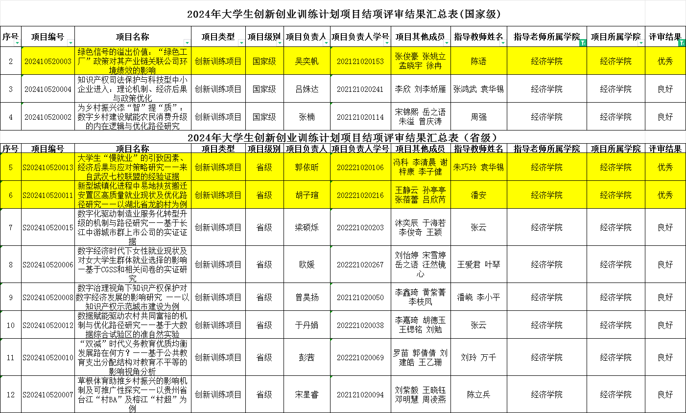 学院重视学生实践能力提升,通过竞赛、实习多途径培养学生理论与实践结合的能力。2024年大学生创新创业训练计划项目结项评审中经济学院老师指导学生斩获1项国家级优秀、2项省级优秀。2025年立项国家级大创4项(其中融通型项目1项),省级立项8项。