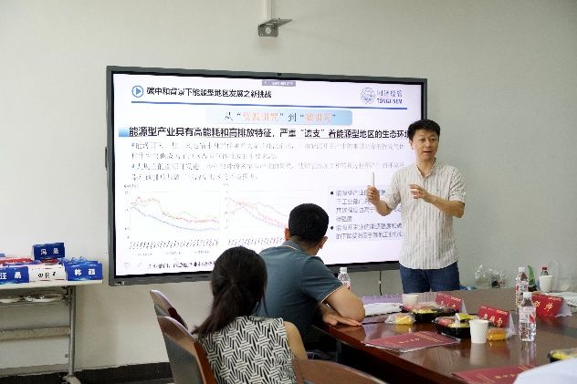 最后,同济大学邵帅教授作题为《能源产业依赖与低碳转型发展》的精彩报告。邵帅教授指出尽管资源诅咒命题的相关研究已就自然资源对经济增长的影响机制进行了大量探讨,但对能源产业依赖如何影响经济低碳转型发展鲜有探讨。邵帅教授基于能源型产业存在环境负外部性的特点,通过构建内生增长模型,深入演绎推理能源产业依赖对碳排放约束下全要素生产率(TFP)增长的影响路径。邵帅教授提出了碳诅咒效应命题及其传导机制假说,进而以我国城市层面数据为样本,对碳诅咒效应的现实存在性及其传导机制进行了系统考察。在交流环节,与会师生对“碳诅咒”、DEA模型等问题展开了热烈的讨论。