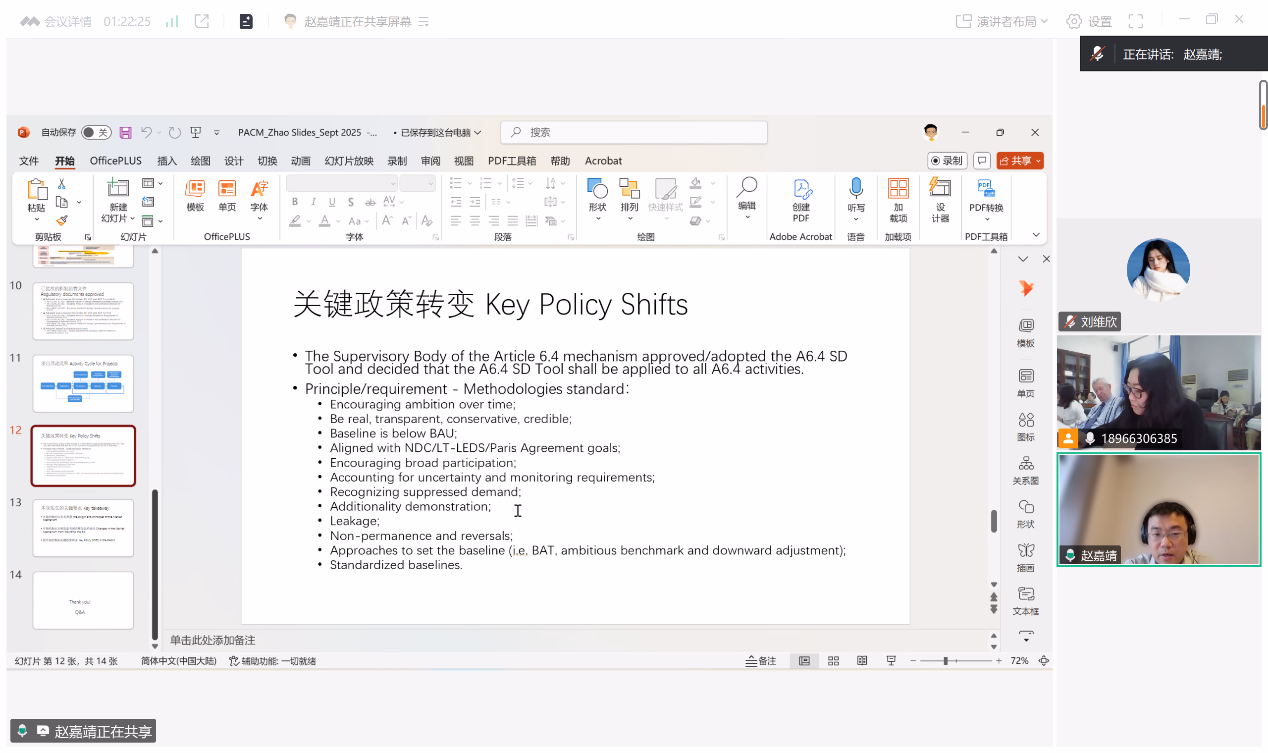 赵嘉靖老师以“The Paris Agreement Crediting Mechanism: Policy Evolution”为主题,主要探讨了市场机制的起源、巴黎协定下的新市场机制PACM及其政策演变;同时,总结了市场机制从京都议定书到巴黎协定的变化,以及新市场机制PACM的关键政策转变,为理解PACM提供了全面的视角。与谈人杨柳青青副教授和曾盈盈副教授分别就PACM关键政策中对个体或私营实体企业方面的细节和程序等问题与赵嘉靖老师展开深入讨论。