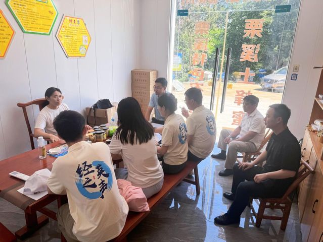 7月24日,实践队抵达荆门市花屋场村,与驻村第一书记张利国、村党支部书记程定金展开了深入访谈。据介绍,该村已于2016年实现整村脱贫,如今已获评“全国文明村”等荣誉,成为乡村振兴典范。在村干部的带领下,实践队还实地走访了花之恋蜂业有限公司,了解到其依托电商直播拓展销售渠道并带动该村就业,同时也面临物流成本偏高等挑战。随后,还参观了“花熳屋场·童趣拾光”乡村记忆体验区,体验文旅融合成果。此外,在村委会支持下,实践队拍摄宣传视频,用镜头记录乡村新风貌,将理论宣讲与实际宣传相结合,使乡村振兴理论传播更加生动直观。