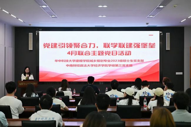 为深入学习党的创新理论,增强党员作风建设,推动跨校、跨学科党支部交流共建、提质增效,我校经济学院学硕第三党支部联合华中科技大学建筑与城市规划学院城乡规划专业2023级硕士生党支部,于4月25日下午在华中科技大学南四楼共同开展主题为“党建引领聚合力,联学联建强堡垒”四月联合主题党日活动。我院研究生工作办公室主任岳明泽、研究生辅导员雷菁、华科大建筑与城市规划学院研工组组长高亚群、党建辅导员杨雨露、我院学硕第三党支部党员、习近平经济思想理论宣讲团以及华科大建筑与城市规划学院城乡规划专业2023级硕士生党支部党员共同参与本次活动。