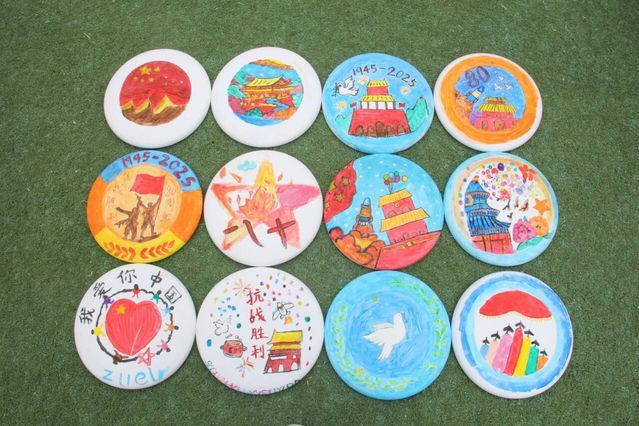 在飞盘DIY环节,各组同学在60分钟内充分发挥创意,以飞盘为画布,用色彩和图案表达对革命先辈的缅怀,以实践行动弘扬伟大抗战精神,表达真挚的爱党爱国爱社会主义情感。