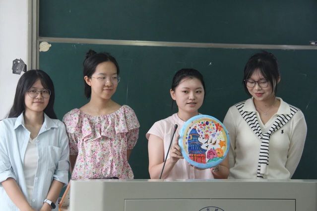 创作完成后,各组依次讲解飞盘设计理念,评委从内容、创意、内涵解释等维度进行打分,现场氛围充满艺术感与思想性。