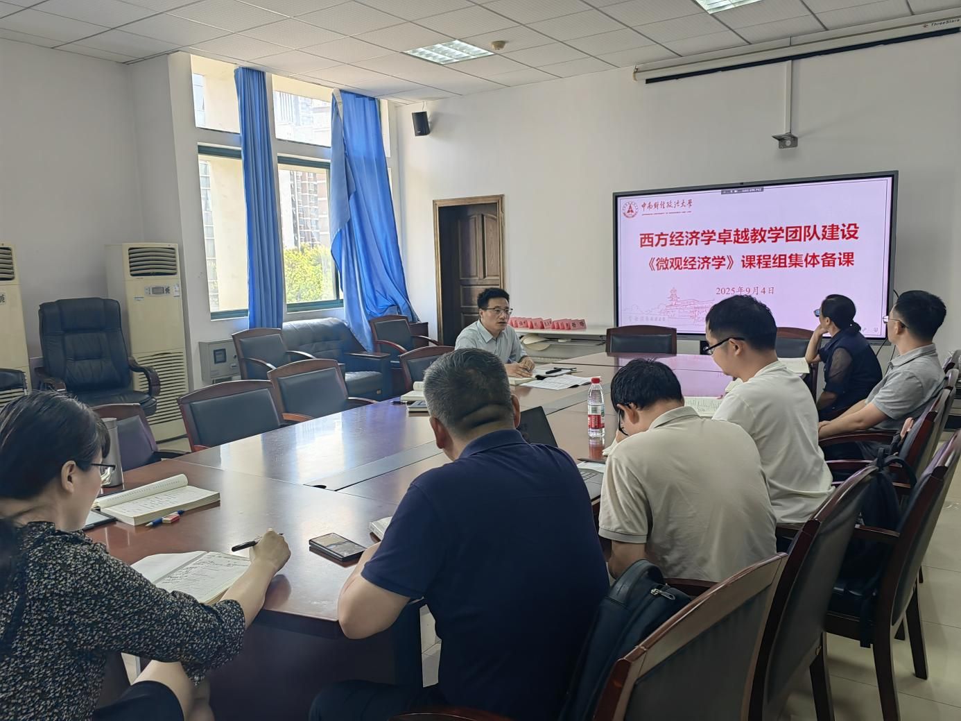 为深入贯彻落实“四个回归”育人理念,深化课程教学改革,全面提升本科教育教学质量与人才培养水平,202594日下午,经济学院西方经济学教学团队《微观经济学》《宏观经济学》《经济学通论》三个课程组分别于文泉楼南207203209会议室成功举办新学期首次集体研讨备课活动。经济学院院长石智雷,数字经济系主任周强,经济学系主任谢靖,西方经济学教研室主任刘玲,三个课程组全体成员参加本次活动