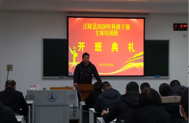 2021年1月6日下午,江陵县2020年科级干部主体培训班在我校首义校区正式开班,来自江陵县委党校的51名县各部门领导干部在我校进行为期四天的培训学习。经济学院院长助理陈立兵、朱巧玲教授、江陵县委党校办公室主任邵云芳、江陵县委党校教务科研股科长盛颖出席开班仪式,经济学院院长助理陈立兵主持仪式。